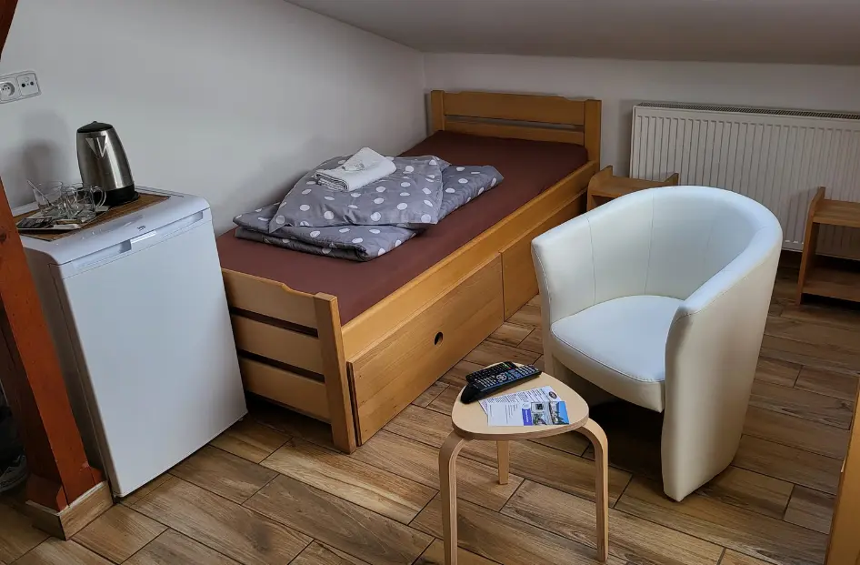 V deseti nových podkrovních pokojích pohodlně ubytujeme až 40 hostů.
